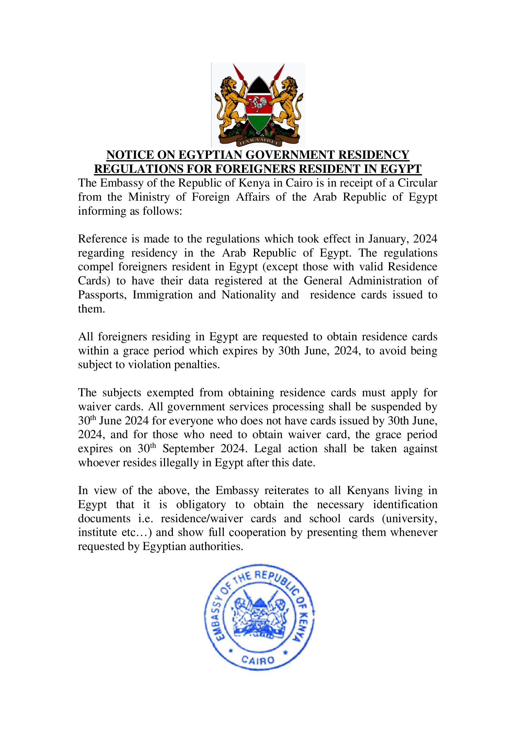 NOTICE ON RESIDENCY-REGULATIONS FOR-FOREIGNERS IN-EGYPT